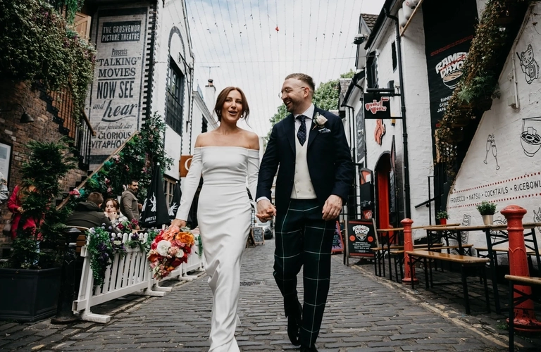 Stroll hand-in-hand down Glasgow’s most charming cobbled street, with its fairy-lit corners and lush backdrops, for photos that are effortlessly beautiful and unique.